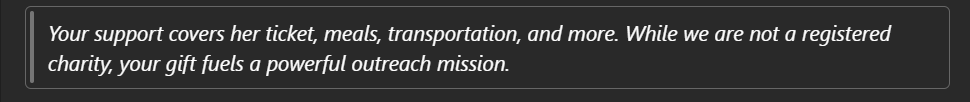 This is more than a contribution—it’s a seed into a soul. You may never meet her, but your faith-filled giving will make an eternal impact.